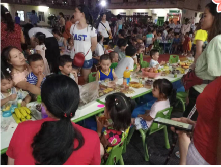 游戏环节到了,主持人给小朋友家长们讲解游戏规则:在击鼓声中传花,鼓声停止时,花传到谁手上,谁就要答关于中秋节的题目。