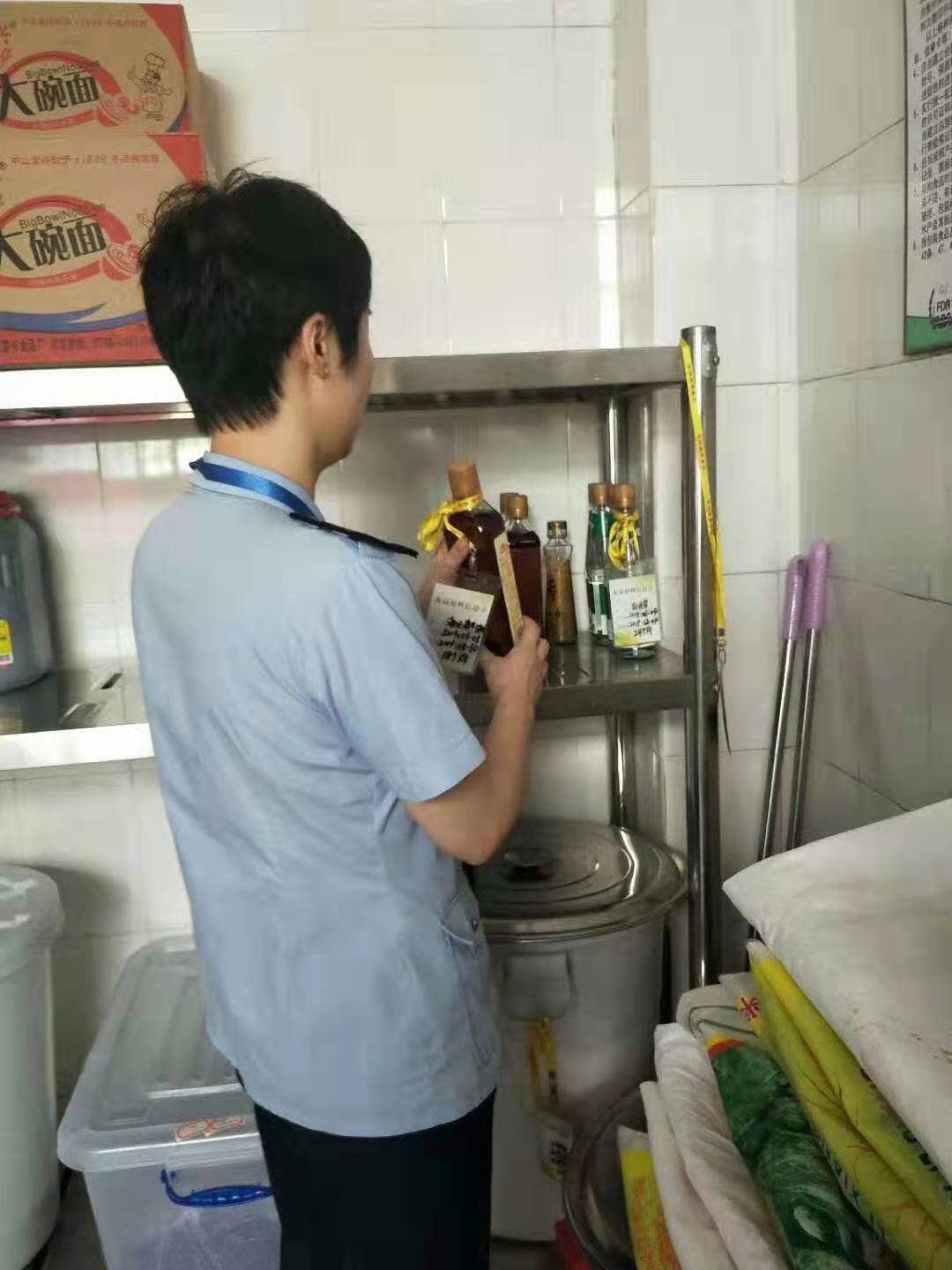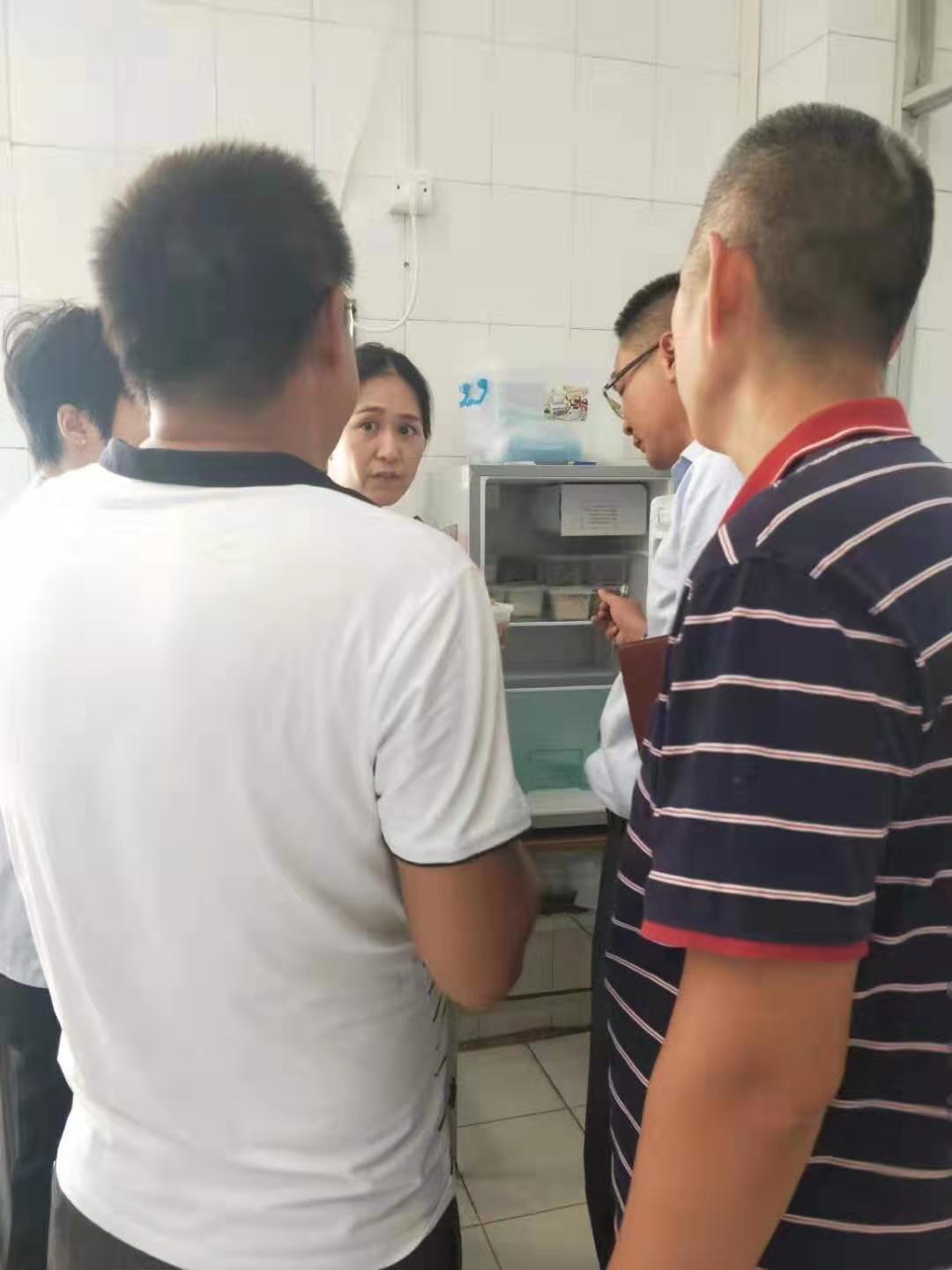2019年9月18日,区教育局和区药监所一行3人对我校食堂的各项工作进行全面检查。首先对食品留样冰箱进行查看,冯科长提出:食品安全无小事,责任重于泰山。