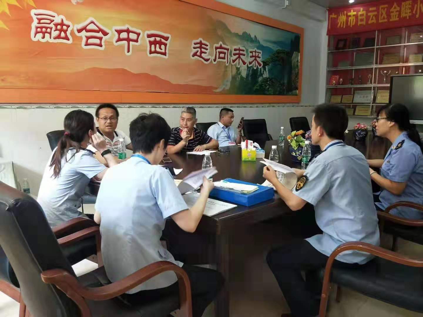 白云区金晖小学迎接区教育局和药监所联合检查