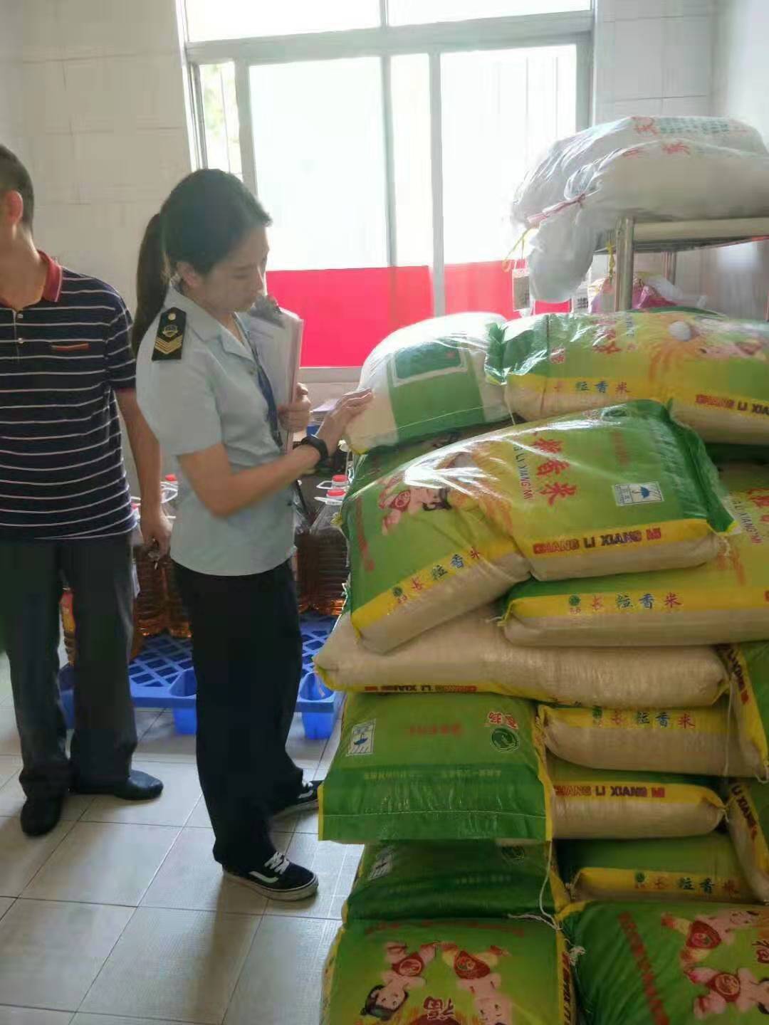 最后到仓库巡查,对食品的进货日期、摆放、保质期仔细查看,食品摆放要离地离墙,确保无过期食品。