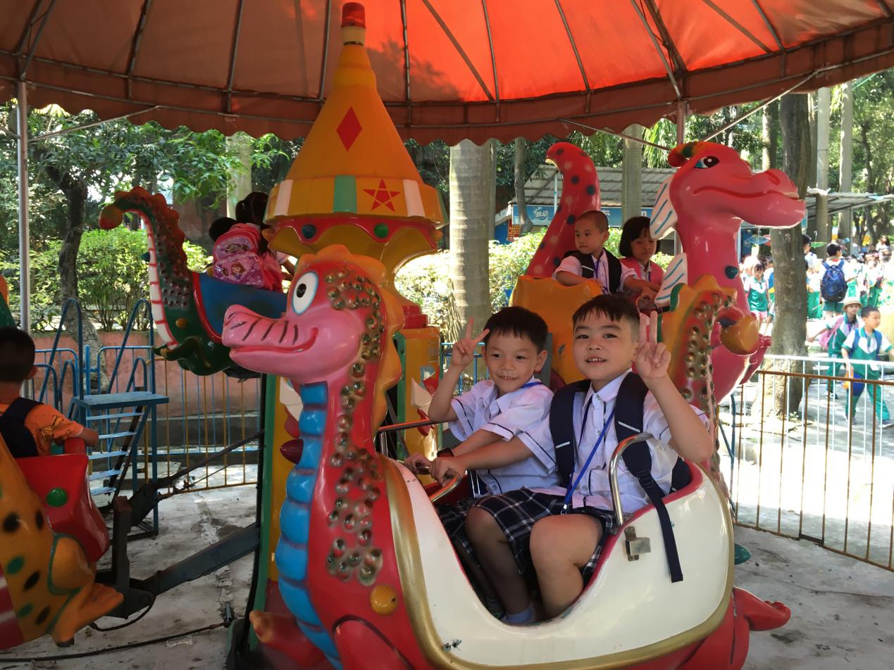 漫步在充满童话色彩的园区内,身边是各种各样的充满童趣的机动游戏:丛林飞鼠、激流勇进、旋转飞椅……看得孩子们眼花缭乱,紧接着孩子们纷纷挑战了自己喜欢的项目。就连老师也和孩子们一起勇敢地尝试了激流勇进,仿佛回到了快乐的童年!笑声、尖叫声此起彼伏,回荡在森悦游乐园的上空。在这样的活动中,孩子们玩出了快乐,玩出了幸福,玩出了知识!