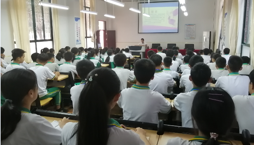 活动由周平校长担任主讲,初中部学生、党员教师以及部分空堂教师共100多人都前来听课。