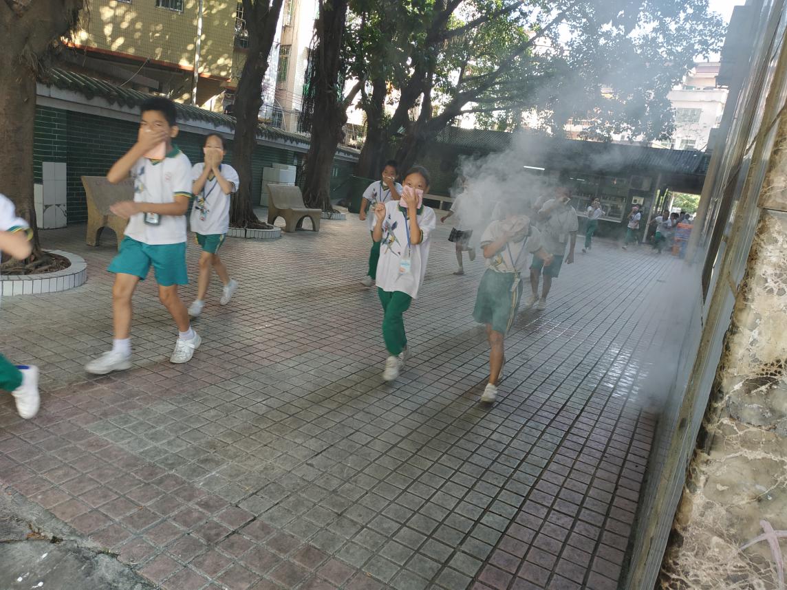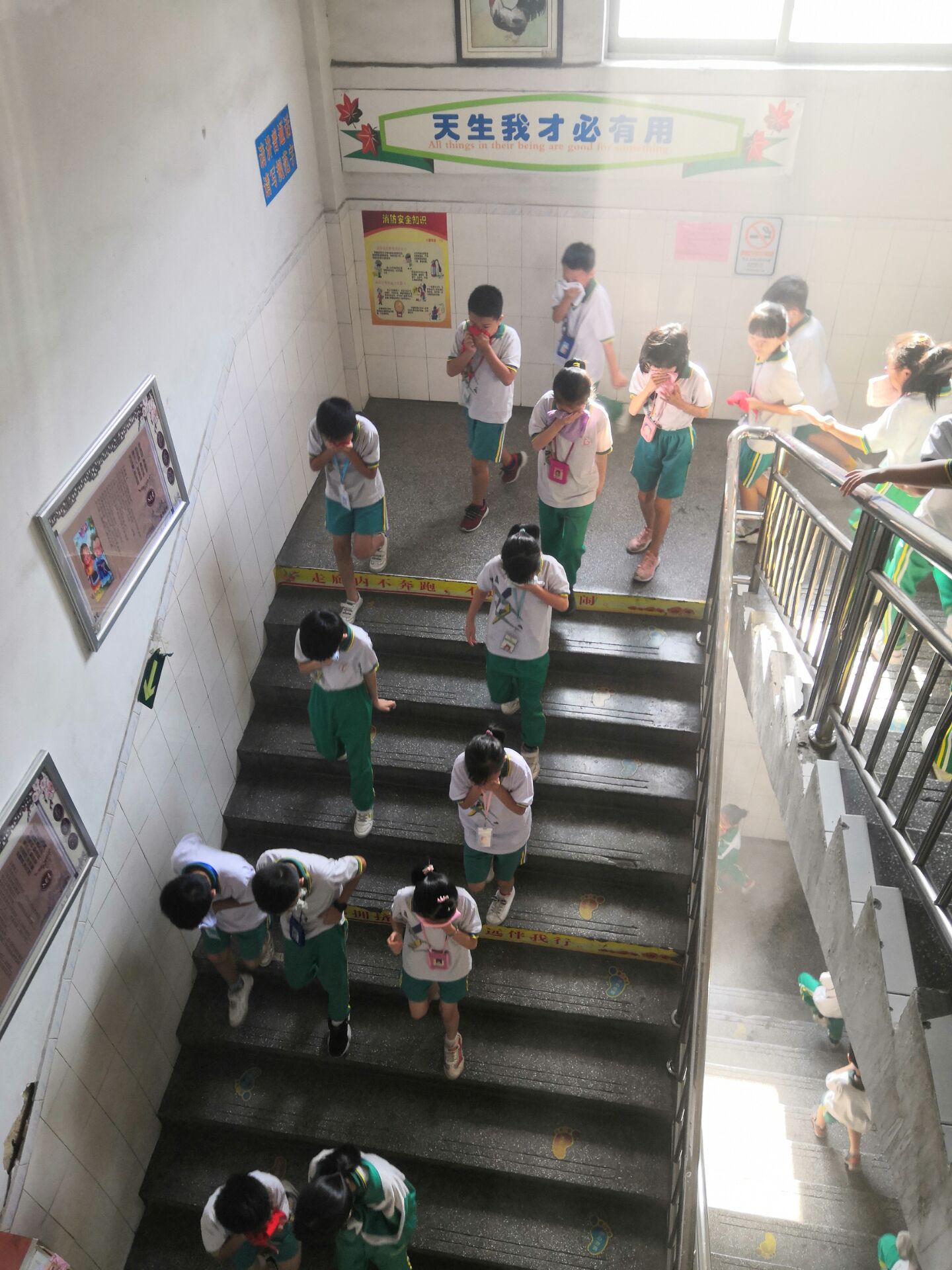当紧急警报声响起,同学们在老师的指挥下,用毛巾、红领巾等捂着口鼻快速有序的从疏散口逃生,能做到迅速、有序的撤离教学楼,最后在操场上集合。 演练过程中,各个楼层都安排了老师站岗,目的是及时、安全、科学地指挥学生,避免同学们下楼梯时发生拥挤。 演练活动达到了进一步让师生共同掌握逃生方法和技能的目的,做到在发生火灾时,临危不乱,有序、迅速地按照消防逃生路线安全疏散,确保生命安全和校园的消防安全,提高自救自护能力。