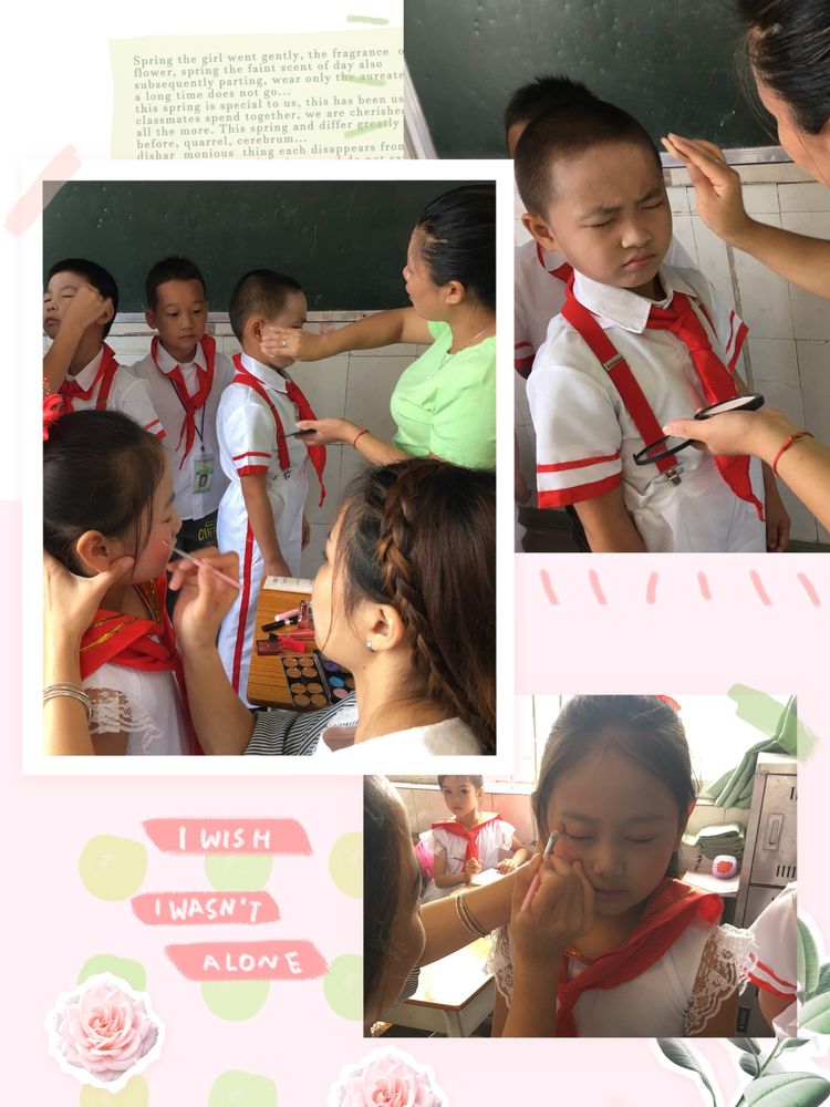经过近半个月的训练,终于到了表演的这一天,老师们为所有参赛的同学画上美美的妆。