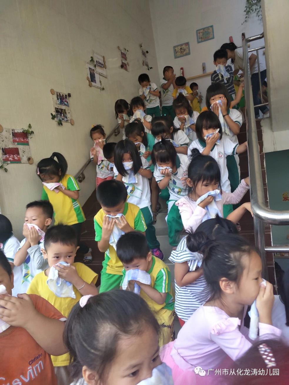 9点50分幼儿园警报响起,幼儿园应急小组立即拨打火警报警电话,并按照应急疏散逃生预案展开演练。全体保教人员迅速按紧急预案的疏散要求,各就各位。小朋友们在老师的带领下,迅速的用湿毛巾捂住口鼻,蜷缩着身子,井然有序地按照消防逃生路线安全疏散。