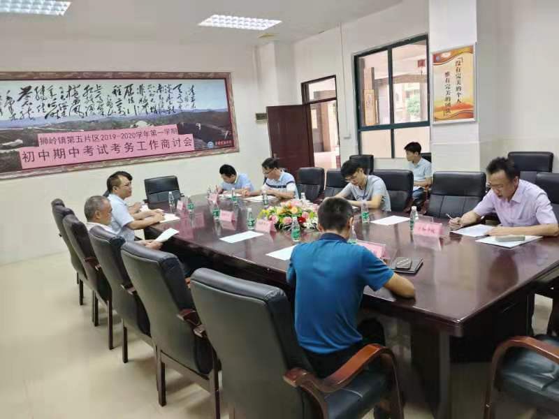 为贯彻落实花都区狮岭教育指导中心关于提高我镇中小学教学质量专项会议的指示和要求,统筹安排狮岭镇第五片区初中期中考试考务工作,2019年10月25日上午9:00,狮岭镇第五片区2019-2020学年第一学期初中期中考试考务工作商讨会在我校会议室召开。