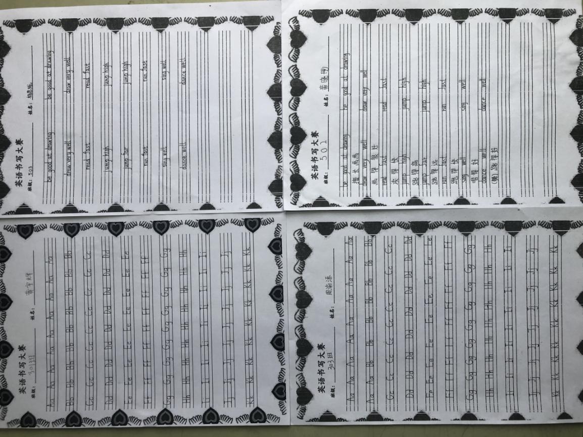 本次比赛,旨在更好地落实《英语课程标准》精神,落实小学英语书写教学目标,进一步加强同学们良好英语书写习惯的培养,检阅小学生应该达到的流畅正确严格规范的英语书写要求,因此此次书写比赛不仅提升了学生对于英语学习的兴趣,认识到英语正确书写的重要性,同时也享受到了英语学习的快乐。