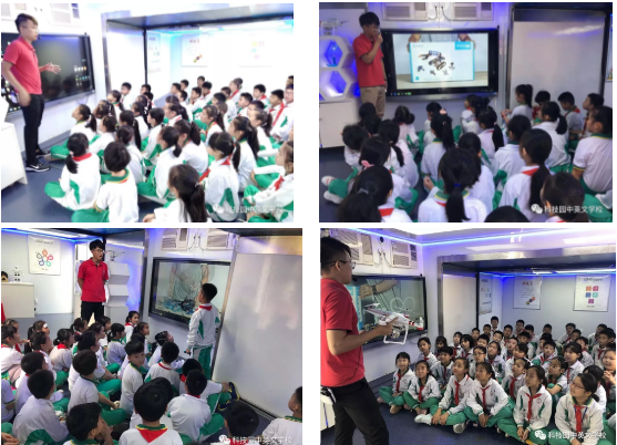 这两天的科技园中英文学校赶了一回技术潮流,瞧,科普创客和智慧课堂“开”进来了。