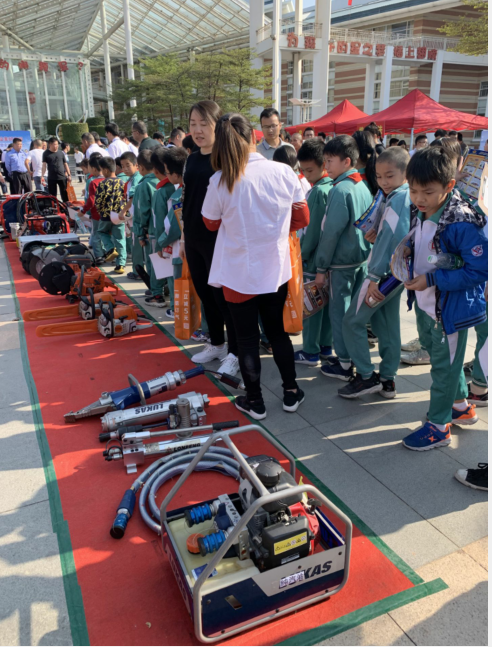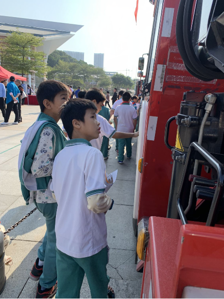 2019年11月19日下午14:30,我校402班全体学生在班主任、科任老师的带领下,来到了星青少年宫广场,参观消防车、消防器材、逃生帐篷等。