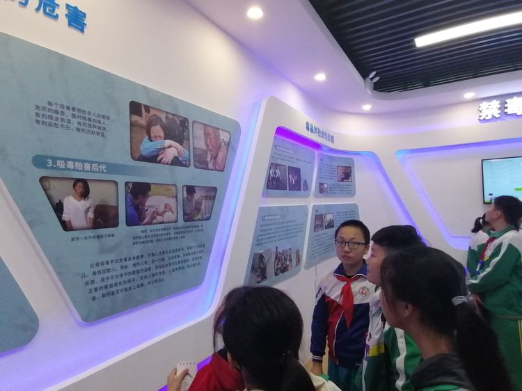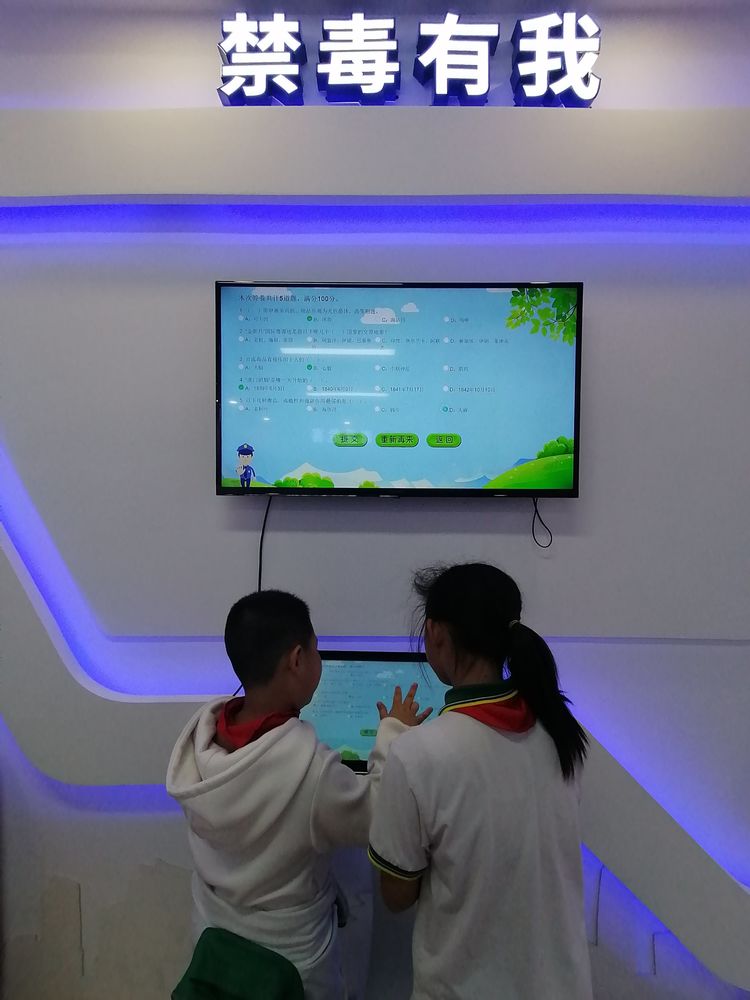 学生听完解说员的讲解后,自由参观。在“禁毒有我”参加智能禁毒知识答题,电脑自动打分并告知正确答案。