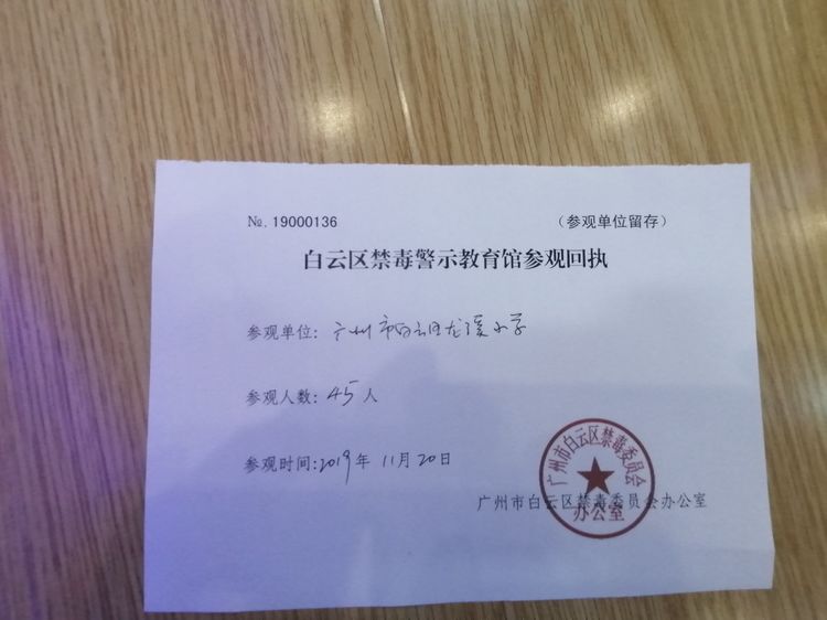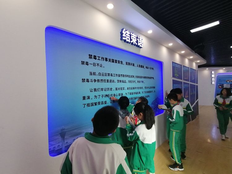 2019年11月20日下午14点,龙溪小学五六年级45名学生代表,在政教处刘立峰主任、大队辅导员吴超岚老师、六年级班主任韩国富老师的带领下,前往白云区禁毒教育警示馆参观。