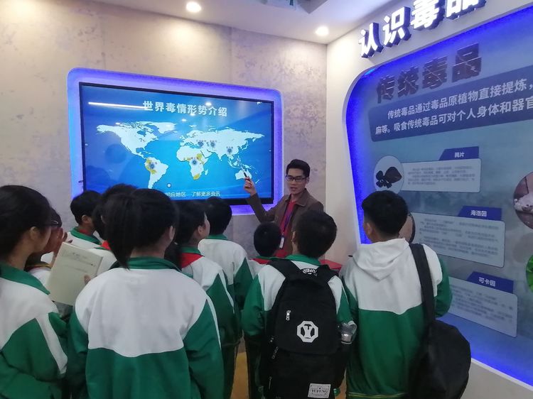 禁毒教育馆的讲解员热情地接待了我们,给师生们讲解了中国的禁毒史,当前世界毒品的形势,毒品的种类与危害。学生们认真倾听并做笔记。