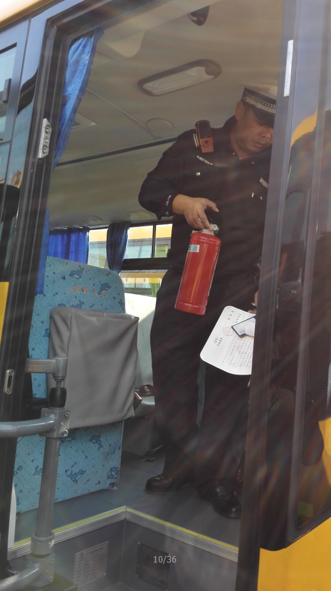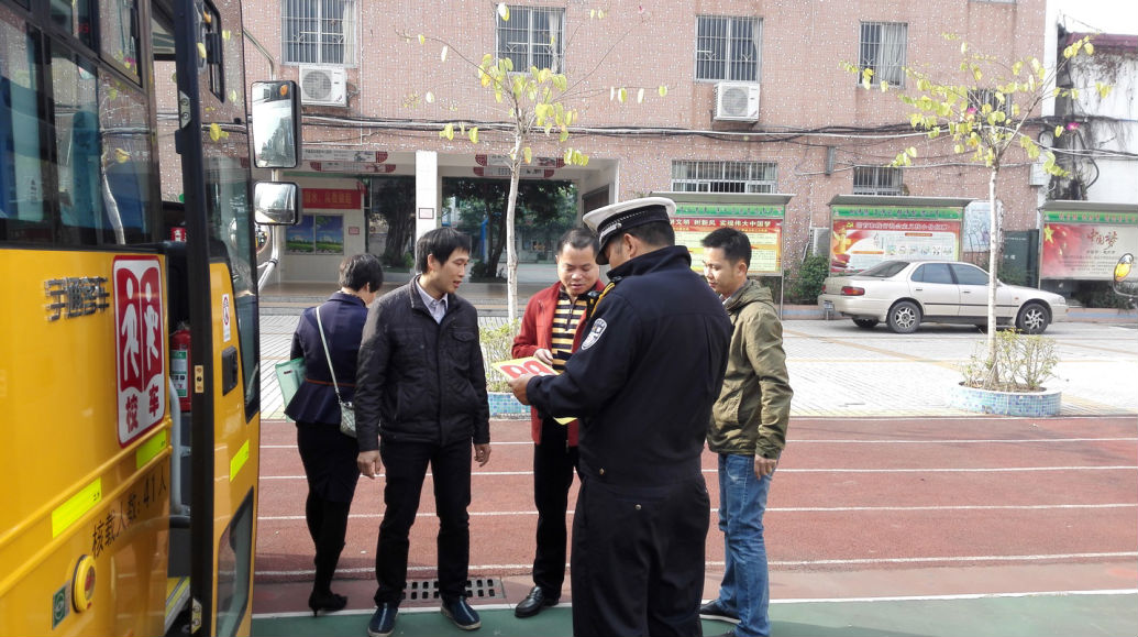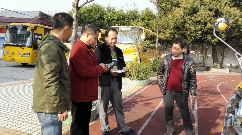 2017年2月14日上午9:00,按上级通知要求,桥南街所有民办小学、幼儿园校车齐聚在我校前操场,进行本学期校车安全工作大检查。教育指导中心张锦添老师与番禺交警7中队警官一起,首先对全体校车驾驶员传达安全知识。接着对每一辆校车进行现场登车查验(驾驶员证件、校车行驶线路标牌、灭火器、安全锤、紧急逃生窗口、停车指示牌、倒车提示、顶灯等)。之后对其他学校不达标的校车进行责令停运、限期整改。