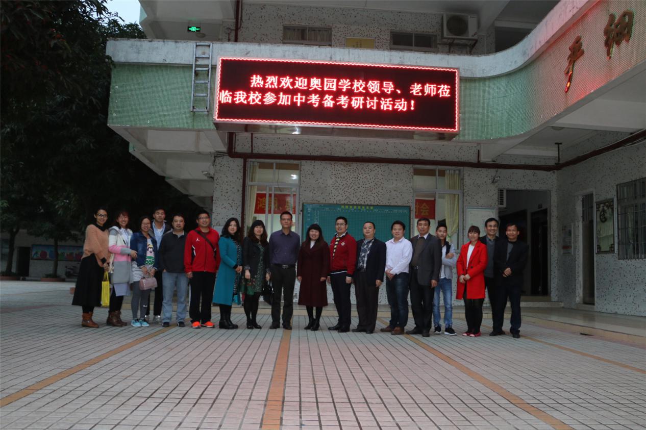 研讨会上首先由我校教导处刘华主任汇报了我校的中考备考工作,紧接着奥园区校长就分享了奥园学校在历届中考过程中的一些有效方法和措施,李副校长畅谈了自己在教学过程中的一些体会,我校初三学科和奥园初三学科的老师也分别做了发言,就本学科的备考策略、重点复习范围及具体备考方案做了分享,会后两校教师还进行了一对一的交流。